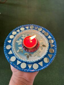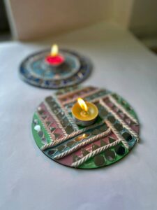 Children will start crafting their tea light holders, experimenting with patterns, textures, and vibrant festive colors. Facilitators will present a sample Lippan Art tea light holder and explain each step of the process. Materials will be distributed, and safety and handling tips will be shared before children begin working on their own pieces.